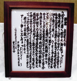 受賞記念と傘寿のお祝いに記念写真をいただきました。